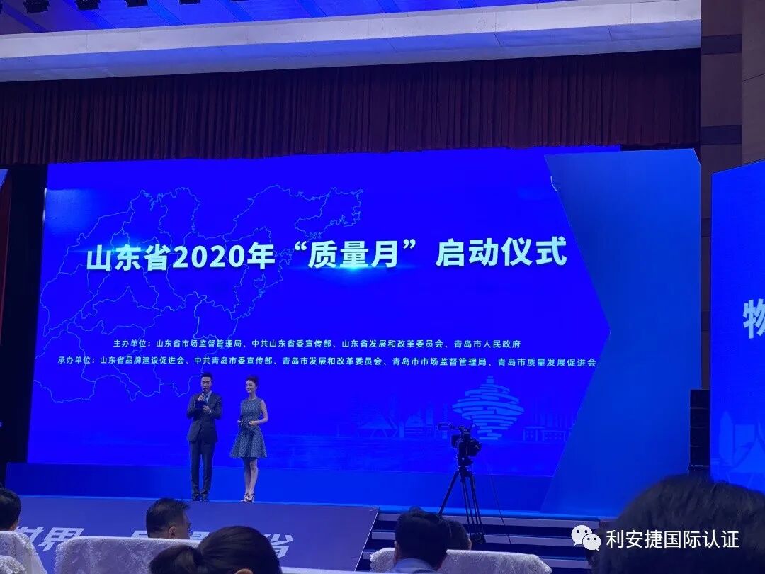 9月2日,利安捷国际认证(简称”LAJCC”)受邀参加了由山东省市场监管局主办,山东省品牌建设促进会承办的山东省2020年“质量月”启动仪式暨质量提升现场观摩会,今年山东省“质量月”活动的主题是“物联世界 质量强省”。省政府副省长任爱荣、青岛市政府副市长栾新出席活动并先后致辞。省市场监管局局长侯成君、省质量强省及品牌战略推进工作领导小组成员单位分管负责人等共计260余人出席,活动在青岛八大关宾馆礼堂成功举行。